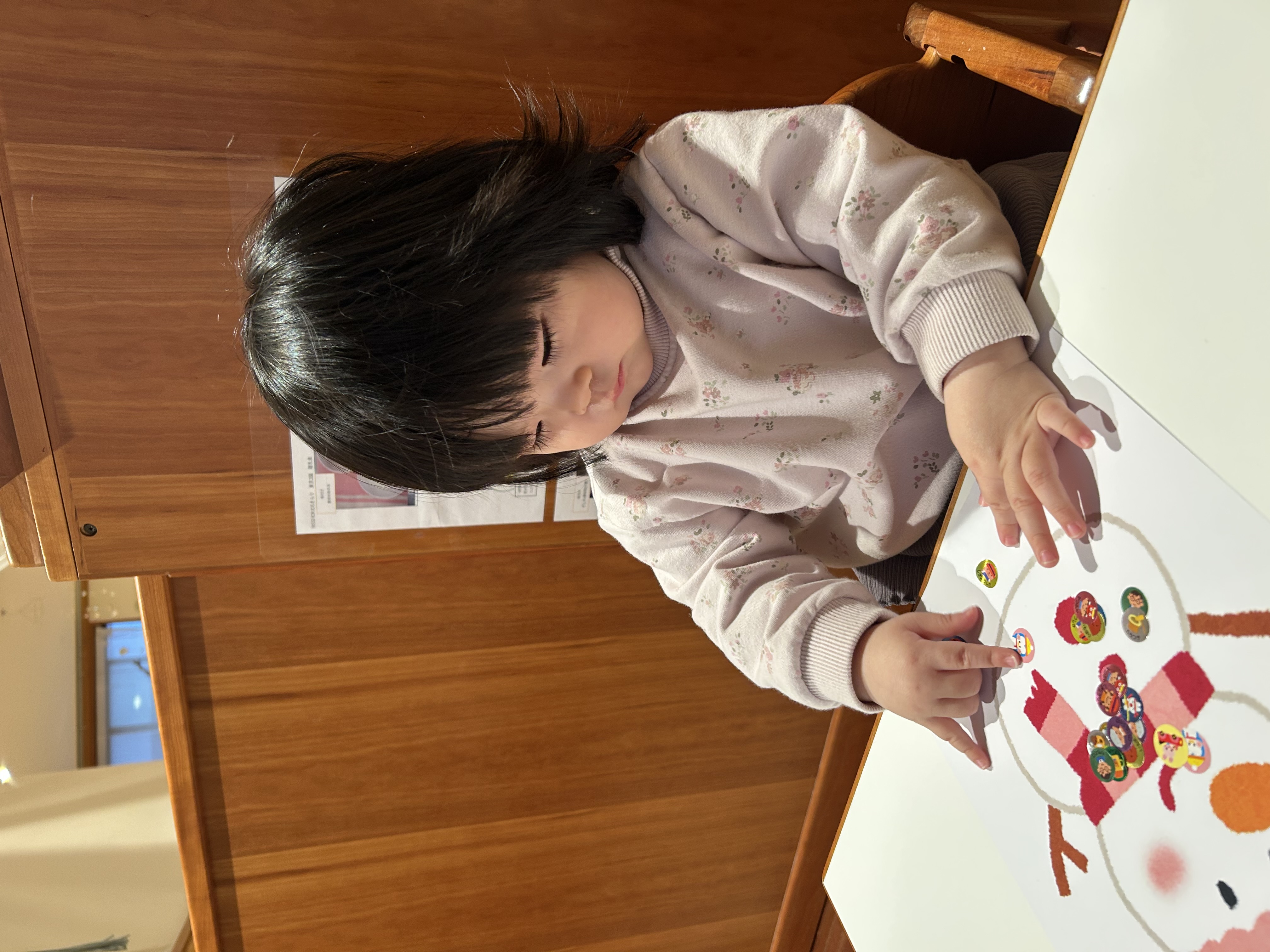 手先あそびが好きなこいぬさんにシール貼りを提案してみました!