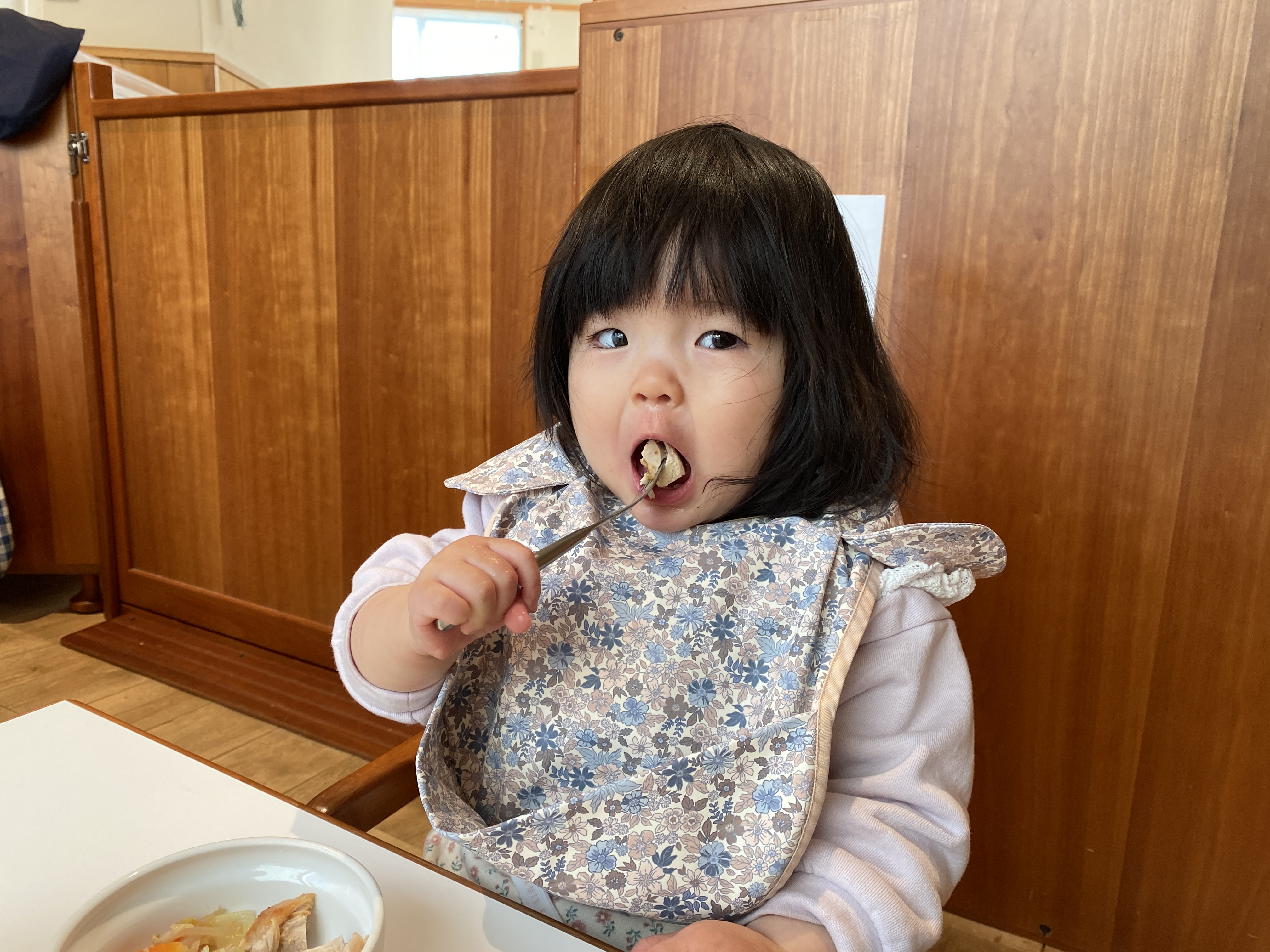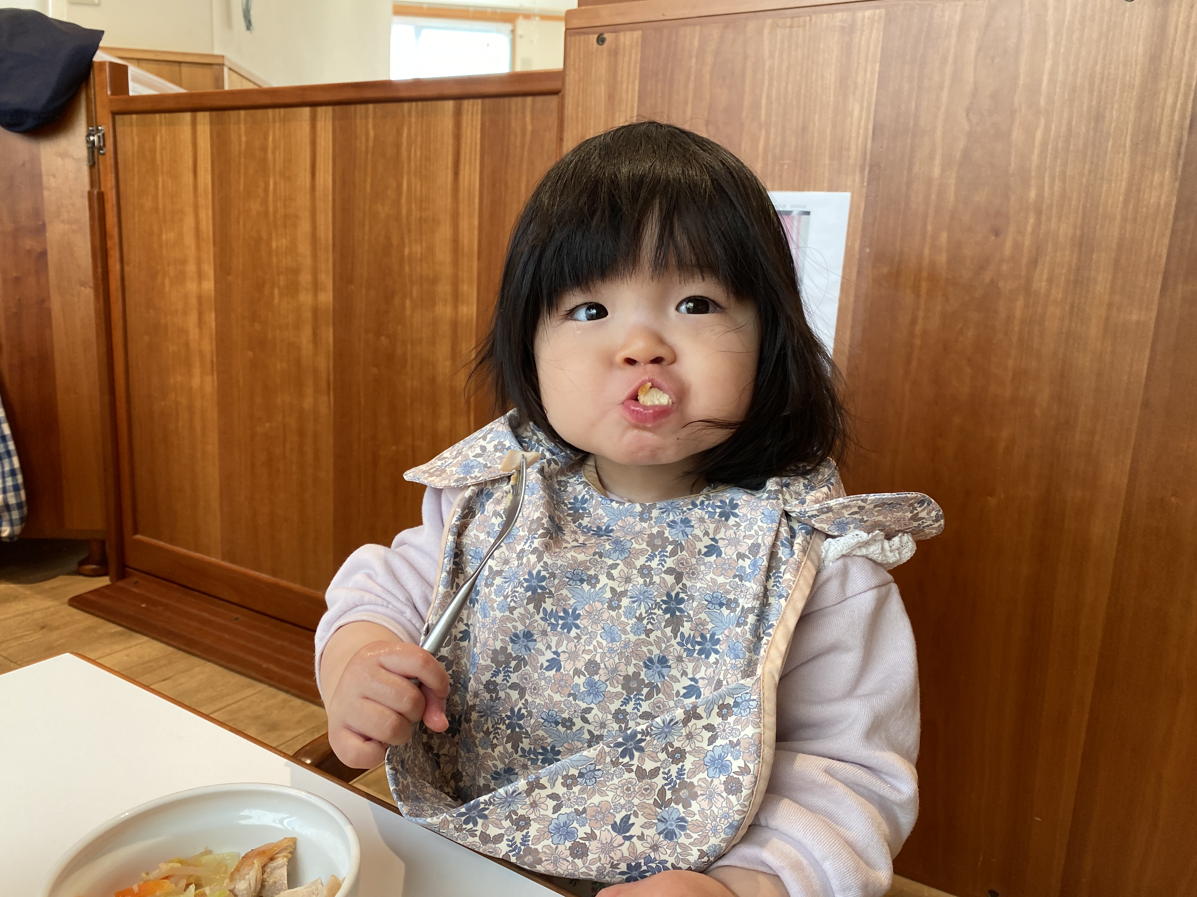 白米やおかずを自分ですくって食べられることが嬉しいようで、満面の笑みを見せてくれます(^O^)