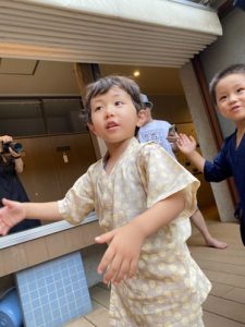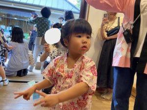 また、盆踊りでは「手をしっかりあげた方がカッコいいかも!」「歌も元気な声で歌ったら、見てて楽しいかも!」とこまかなところにポイントを向けて踊り…曲が流れるとすぐさま集まり、友達と顔を合わせて楽しそうに踊る姿が見られました♪