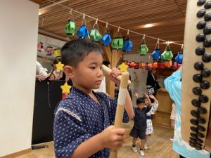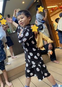 当日の盆踊りは、オリオン組が代表して太鼓を叩き、元気いっぱいな踊りを披露した素敵な夏の思い出となりました☆