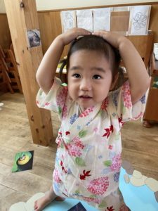 夏祭りに向けて、“盆踊り”の活動に意欲的だったこぐま組のお友達★先生の振り付けを歌にしてみたり、自分でオリジナルの踊りを作ってみたり…音楽を通して夏祭りの雰囲気を味わいながら、身体を思う存分動かす姿が印象的でした!