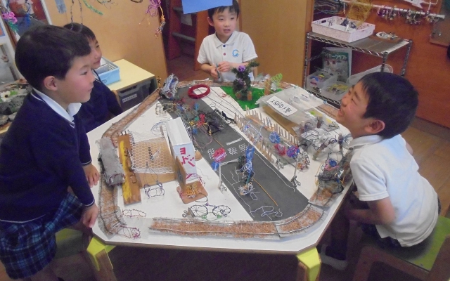 きらりでは、3歳児以上の子どもたちは、一人一枚パスモを持っています。電車(特に小田急線)が大好きな男の子たちは、定期的に電車に乗り興味を深めています。その中で出会った新宿駅で働く小田急ショップの方や、駅員さんや車掌さんとの交流を楽しでいます♪そこから時刻や駅名にも興味が広がり、オリジナルの電車カードや電車図鑑を作り、数字や文字にも親しんでいます☆